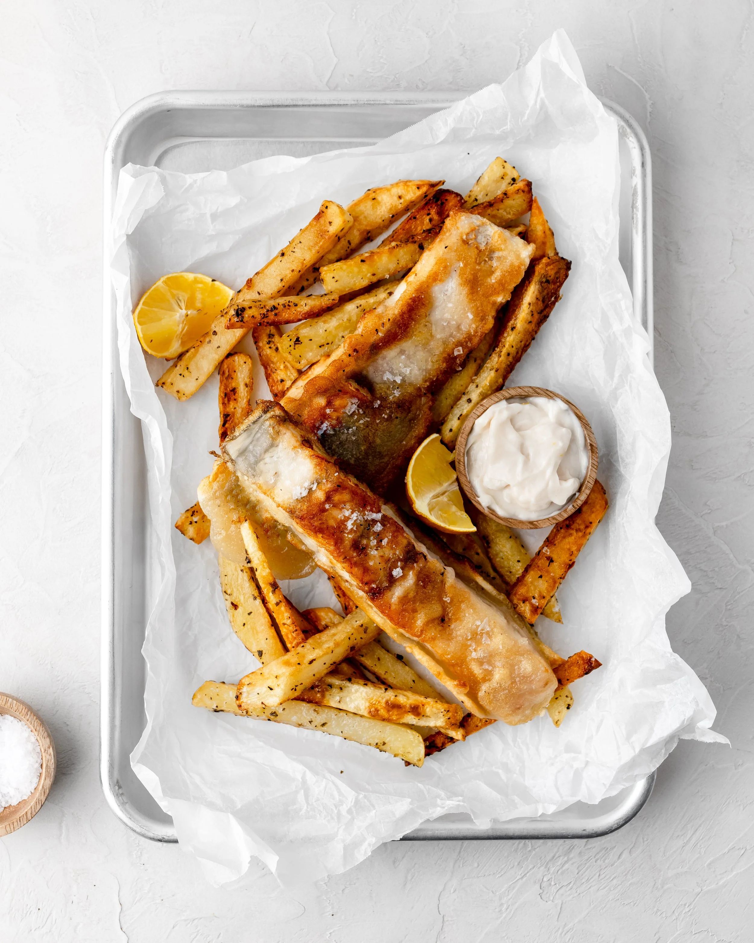 Paired with chippies, cooked in good quality extra virgin olive oil as opposed to the inflammatory vegetable oil you would get from a fish and chip store. These apple cider battered fish and chips are healthy and just as delicious!