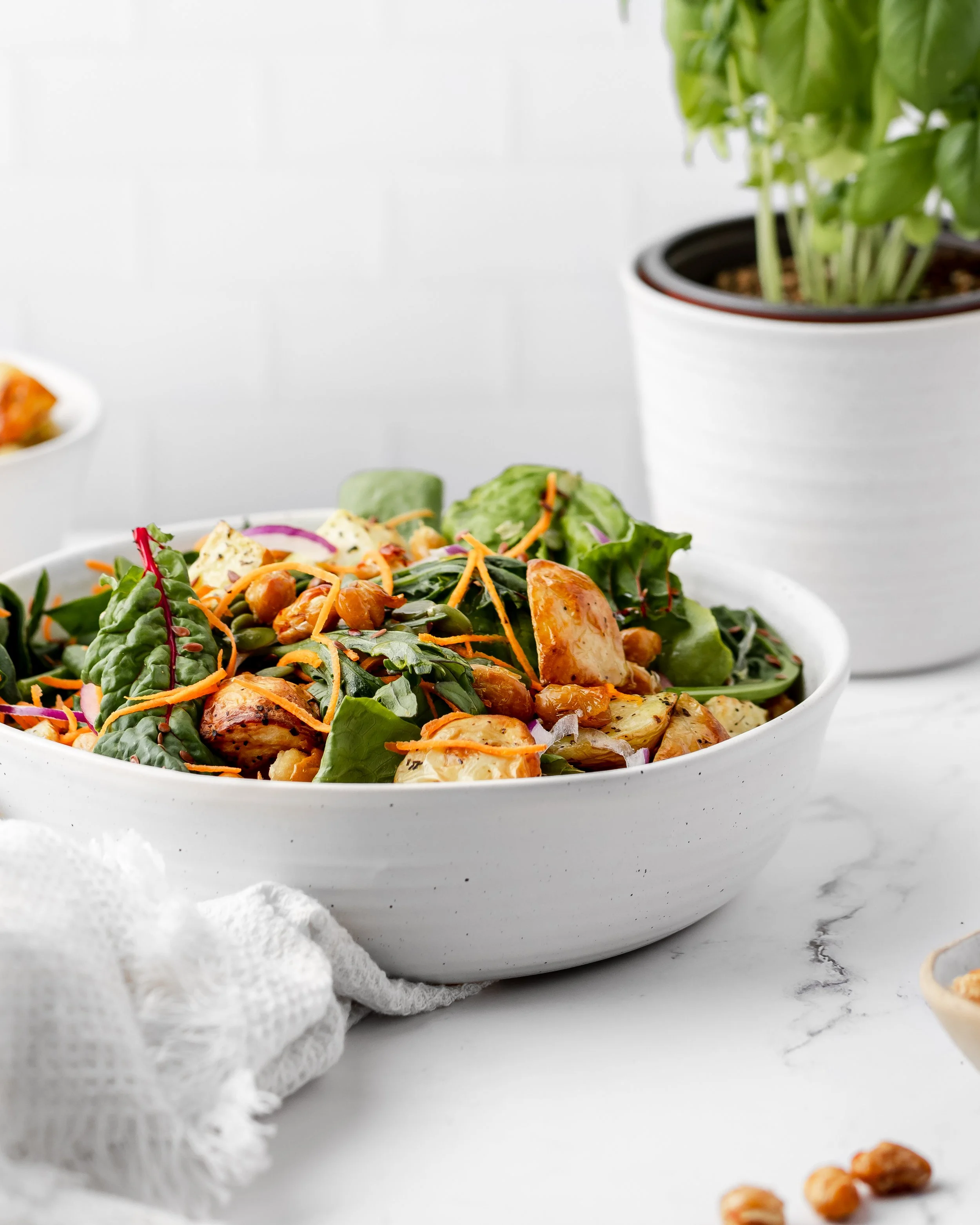Who said potato couldn’t be crispy in a salad? I mean roasted potatoes have to be the tastiest way to eat them!