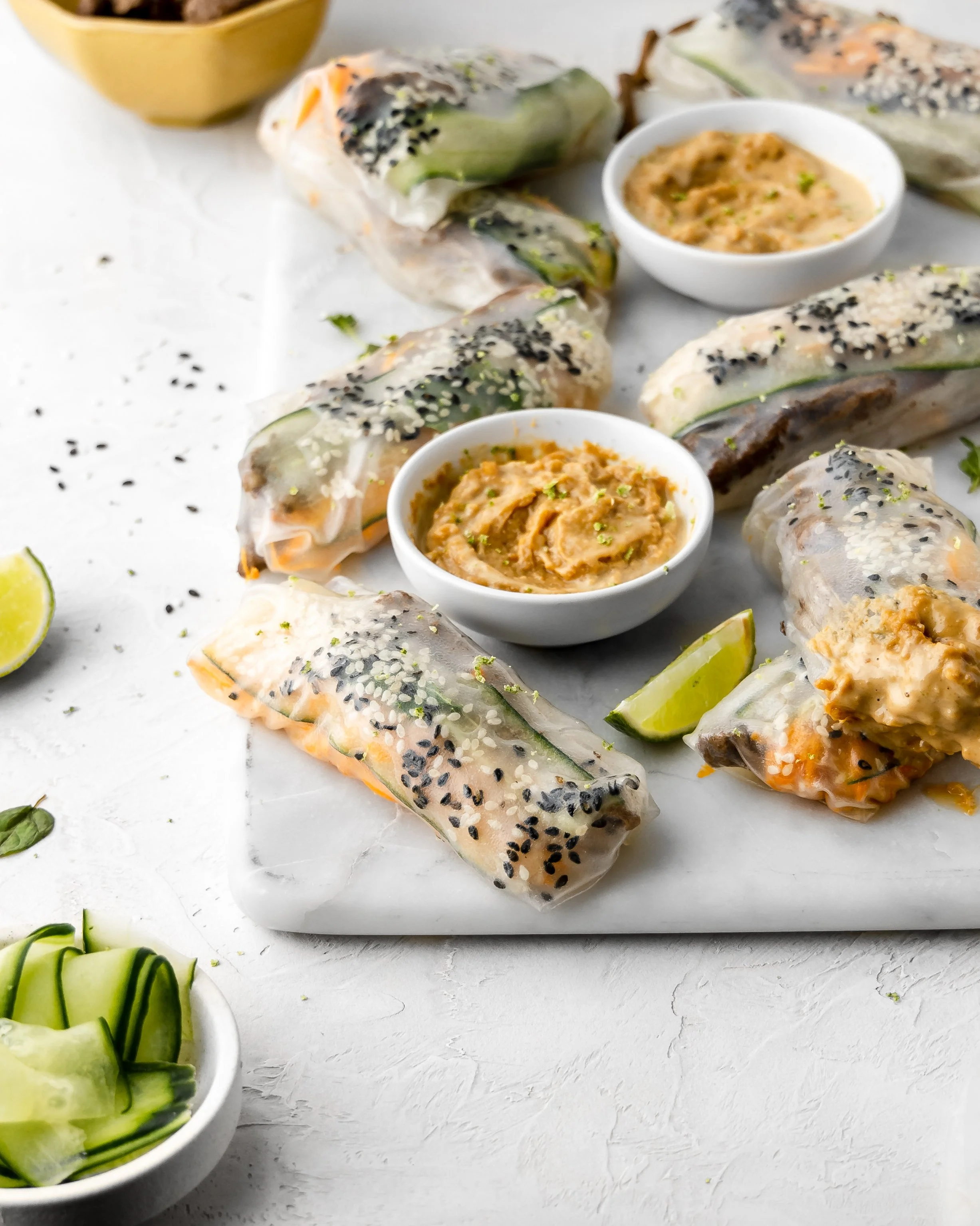 Rice paper rolls are one of my favourite things to make at home! They are so versatile, you can fill them so so many delish combos, but this one is certainly one of the best!